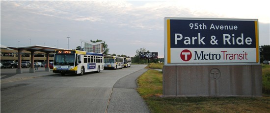 Description: With nearly 1,500 parking spaces, the 95th Avenue Park & Ride is Metro Transit's largest Park & Ride. Located in the northwest corner of Interstate 35W and 95th Avenue NE, the Park & Ride includes a three-deck parking ramp with around 500 covered parking spaces; additional parking is found on an adjacent surface lot.