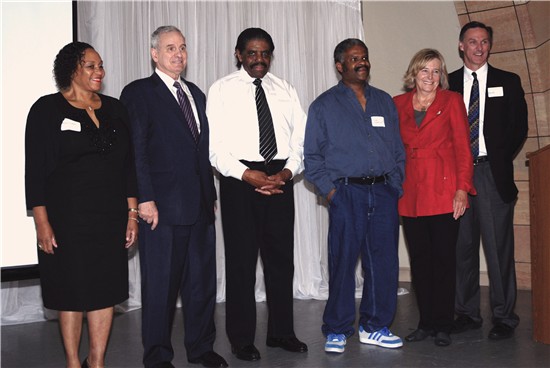 Photo: Gov. Mark Dayton, was a special guest at this week’s Employee Recognition Event in St. Paul. He applauded the work of the Met Council and recognized Nicollet Maintenance Manager Silas Sharp, third from left, who will mark 50 years of service at Metro Transit in November. Sharp was joined by his wife Mary, son Silas Jr., Met Council Chair Susan Haigh and General Manager Brian Lamb.