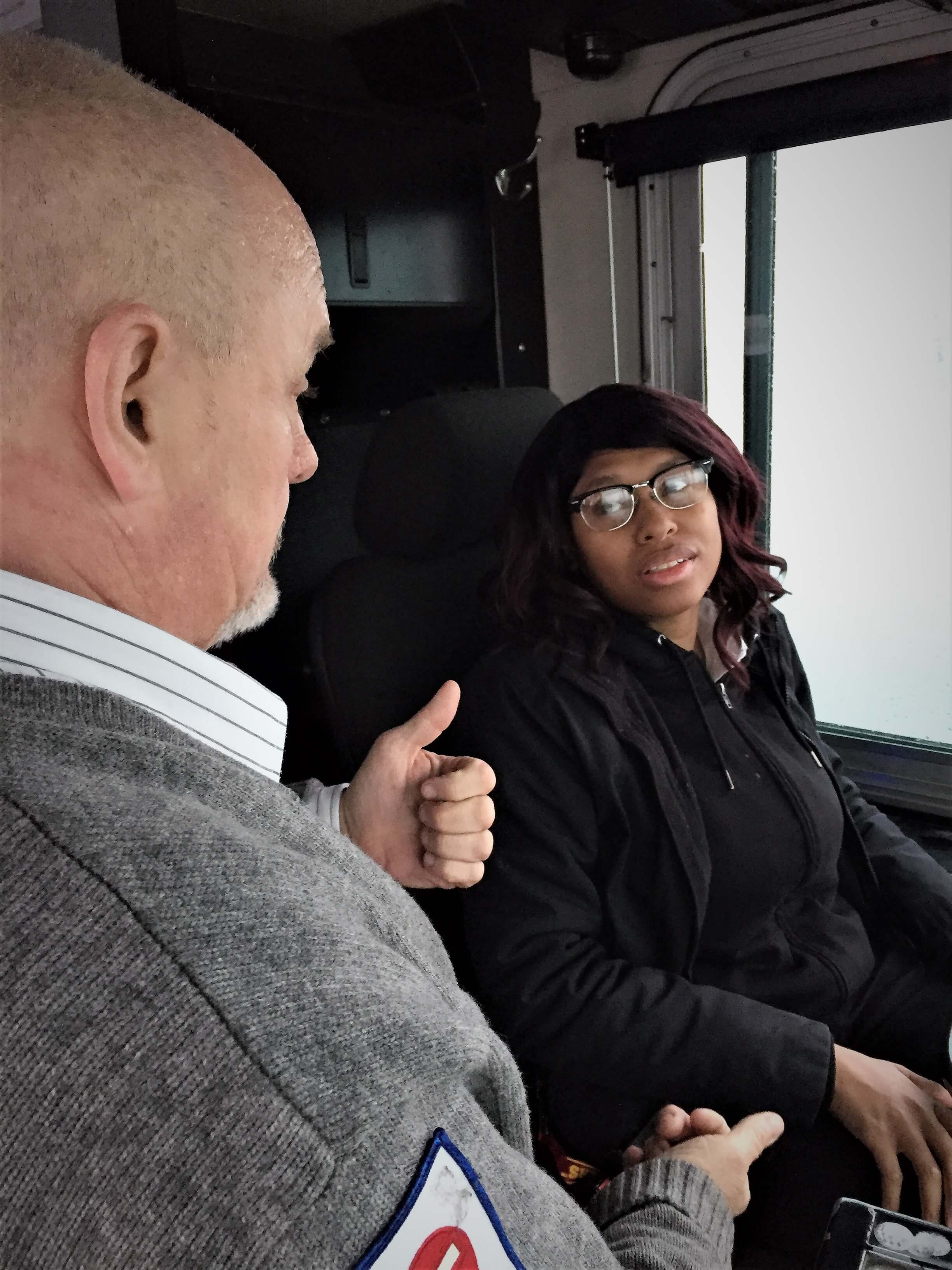 While there’s a long road ahead, her confidence showed as she put the bus into reverse, correcting course to avoid hitting a cone. Backing up is one of the more difficult maneuvers in the CDL test.