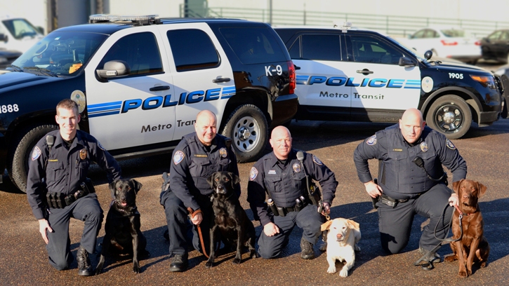 The good news: the dogs haven’t caught a whiff of anything suspect since Metro Transit’s K-9 unit was created in 2007.