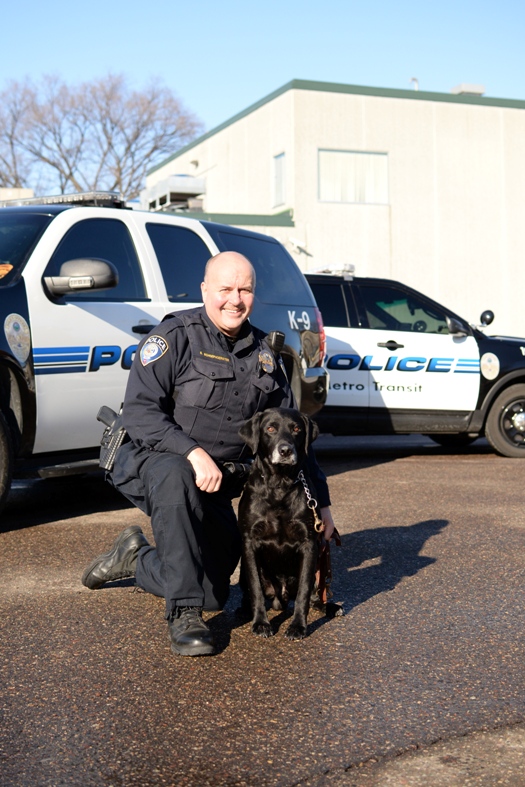 Johannes and Merle are one of four K-9-officer duos at the Metro Transit Police Department. The officers and K-9s spend their days at busy boarding areas as well as light-rail and Northstar trains proactively searching for potential explosives. The unit also works closely with regional partners and during large events such as Twins and Vikings games.