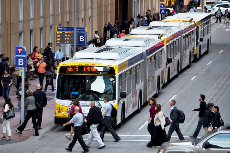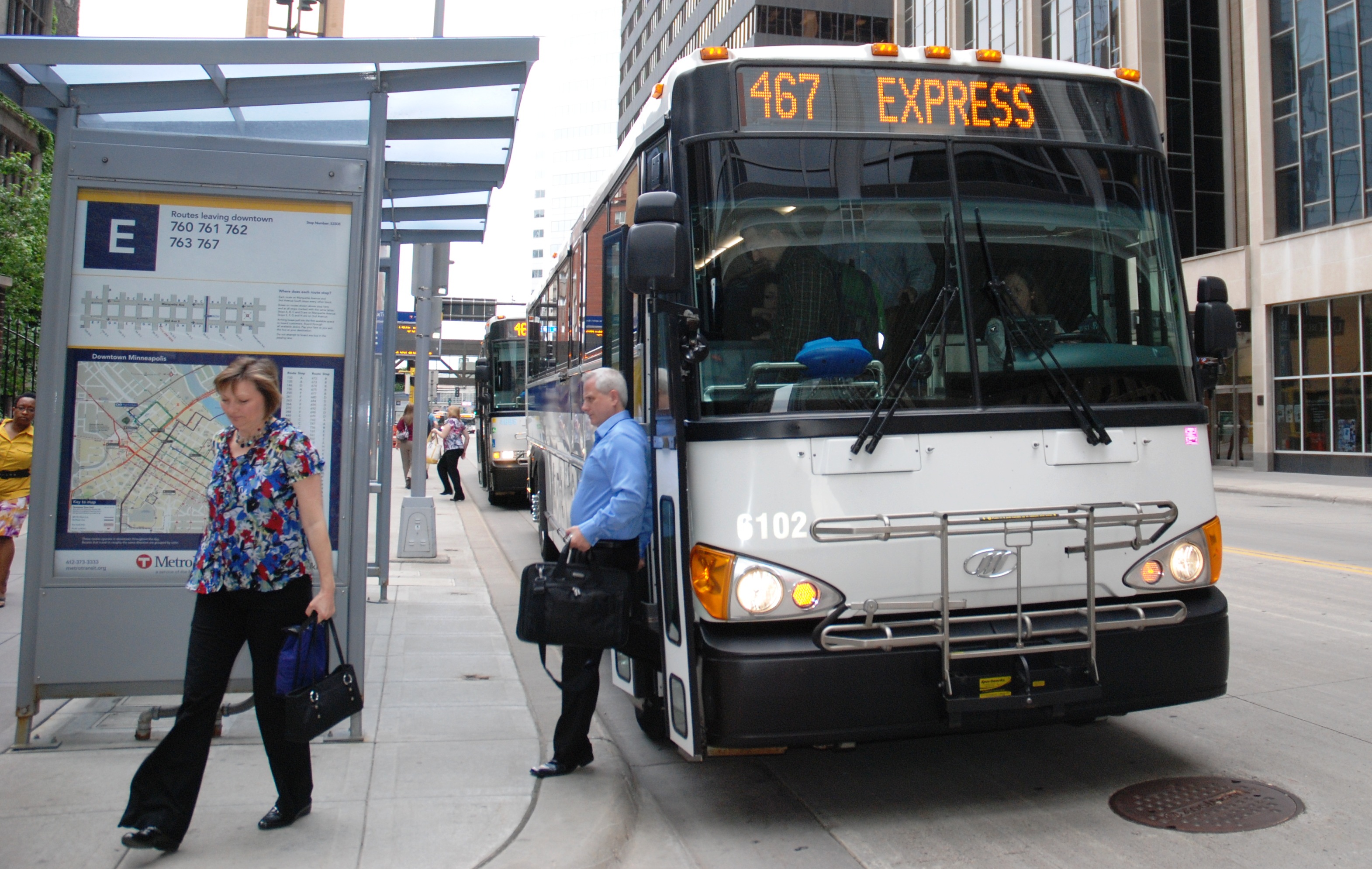 In 2009, Marquette Avenue and 2nd Avenue South were rebuilt to better serve the thousands of commuters who arrive in Minneapolis by express bus each day.