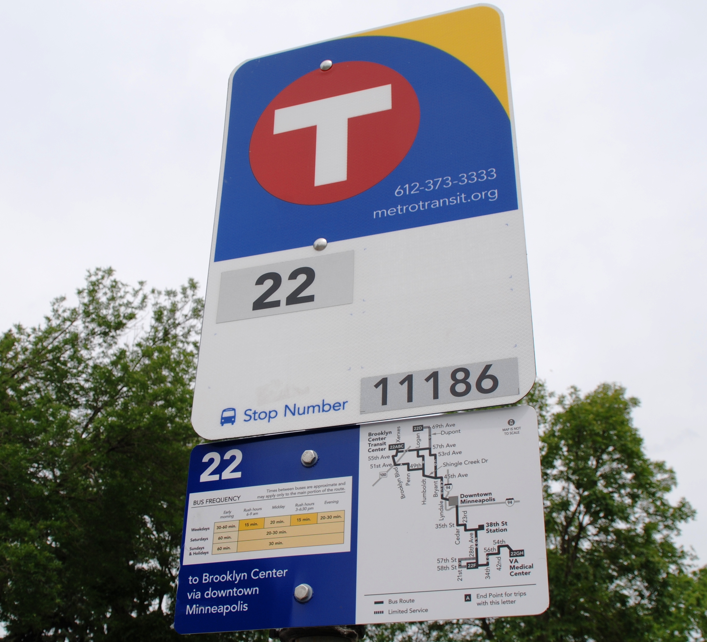 The new signs were placed at sites with local, express and a combination of services. They can be found along portions of North Lyndale Avenue in Minneapolis and along Zane Avenue North and Brooklyn Boulevard in Brooklyn Park.