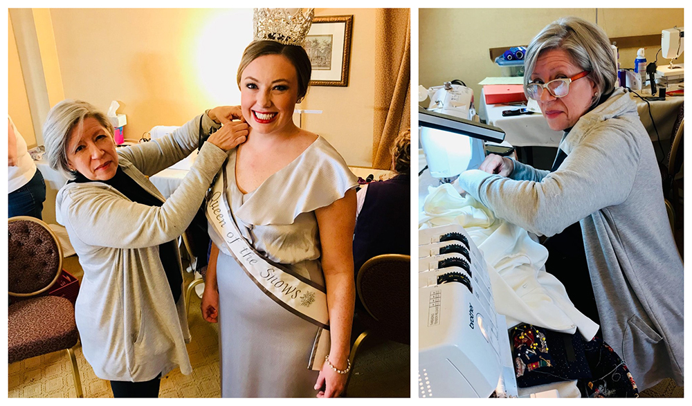 I like to volunteer with Transit Police and at other events where I can be creative. For the last four years, I’ve worked with a few other seamstresses to alter garments for the Saint Paul Winter Carnival royalty. We spent the weekend in a hotel room with our sewing machines, working around the clock to get them ready. (Above, Warren makes alterations to a dress worn by Alison Gunter, the 2019 Saint Paul Winter Carnival's Queen of the Snows.)