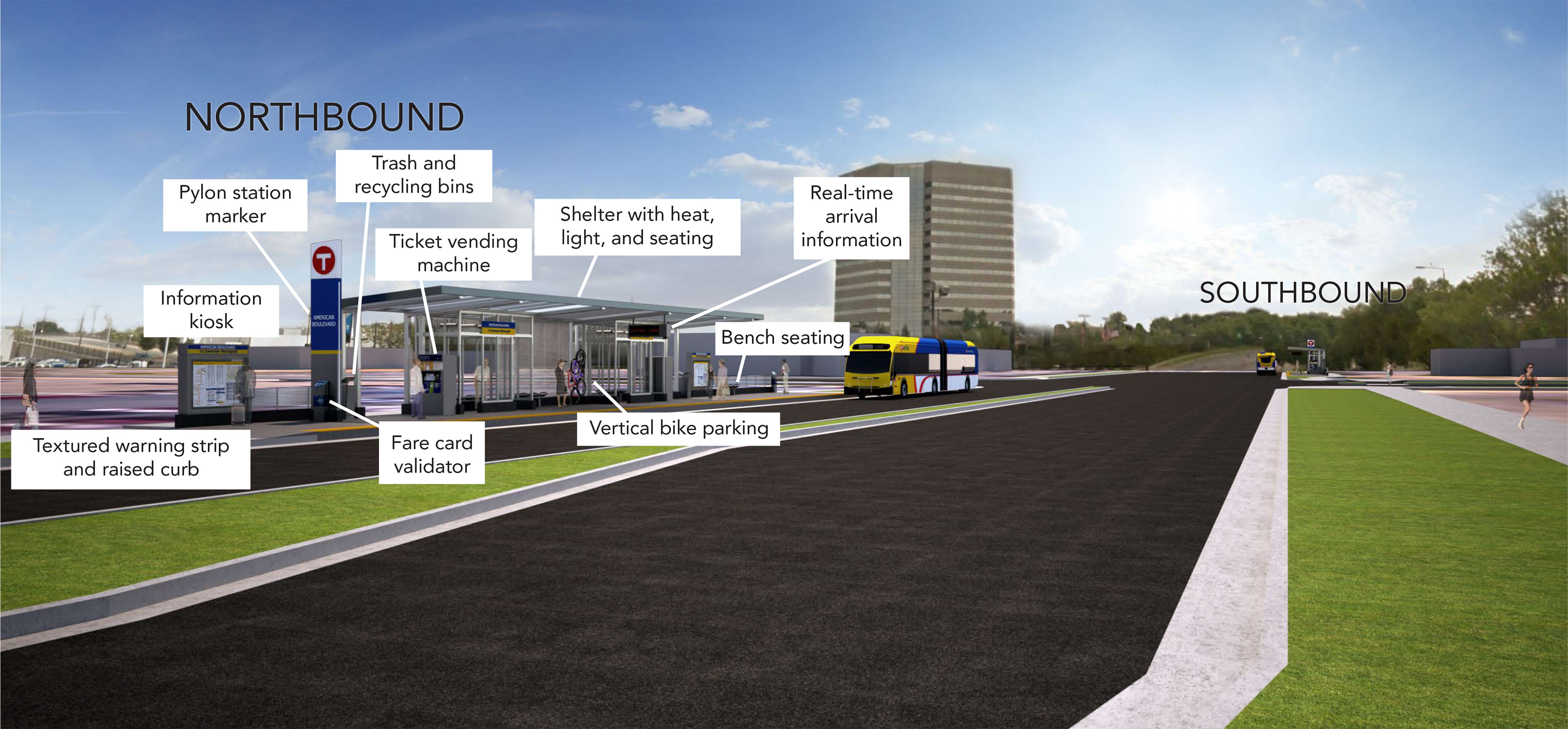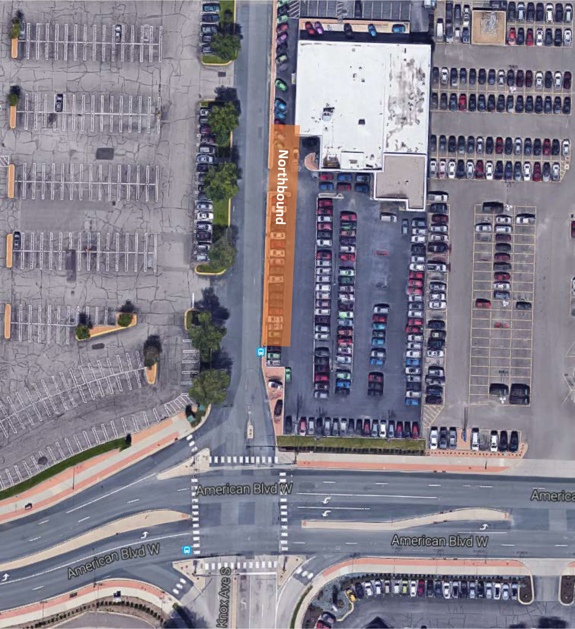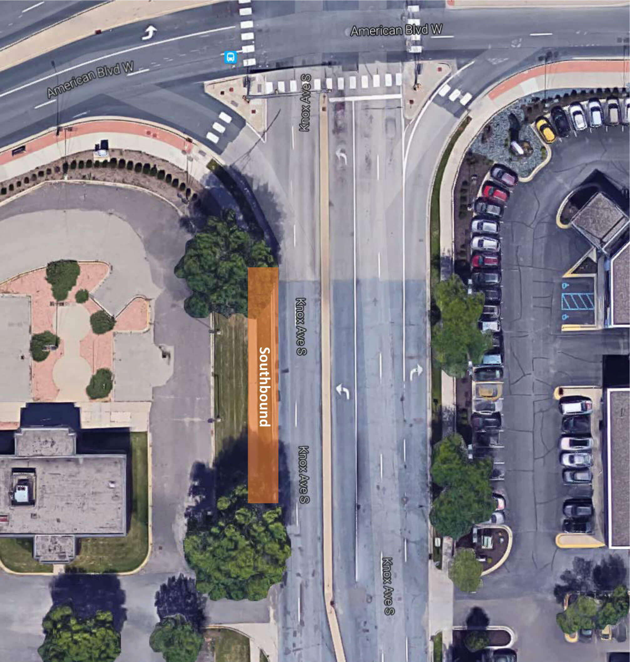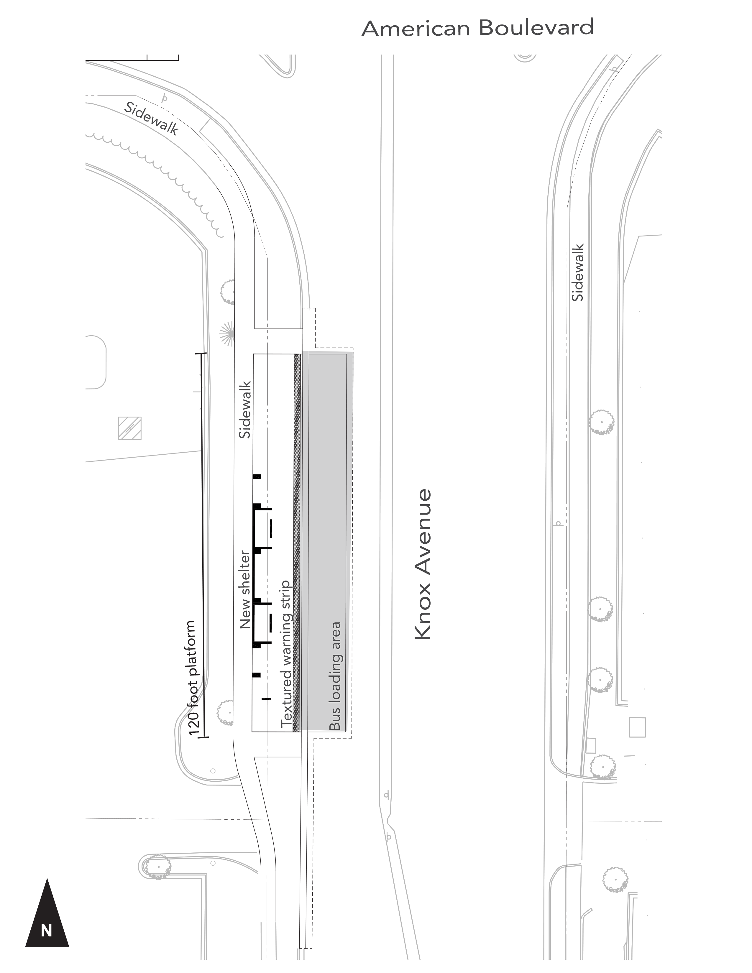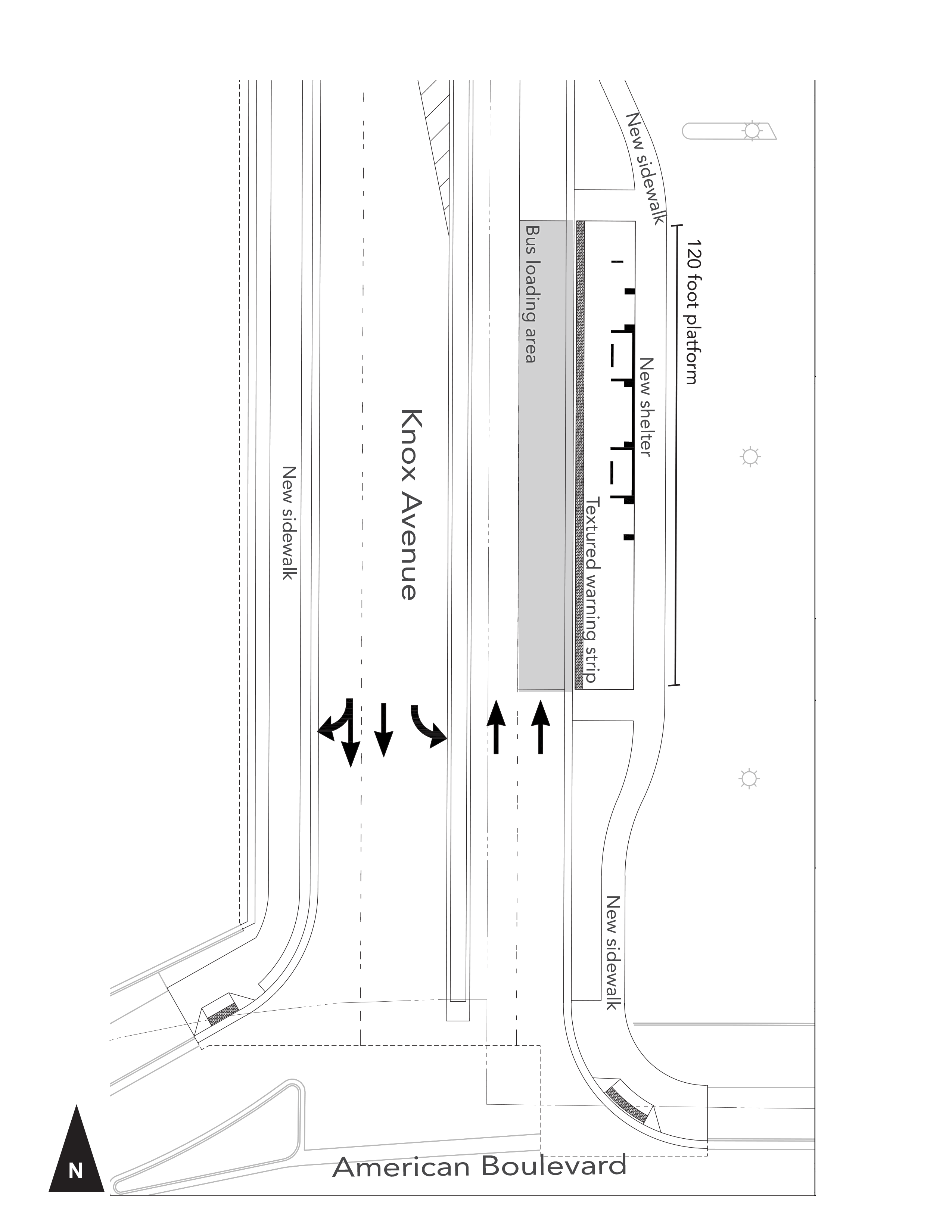 This station will be located on Knox Avenue at American Boulevard with platforms on both sides of the intersection. It will be adjacent to Southtown Center and the Penn American District. Each platform will be 120 feet long and include two shelter waiting areas with a large canopy. New sidewalks will be built on both sides of Knox Avenue.