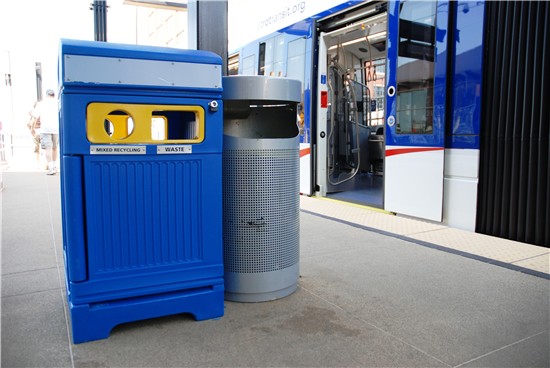 Metro Transit customers will notice something new the next time they’re at the METRO Blue Line’s Target Field Station: a blue and yellow recycling bin.