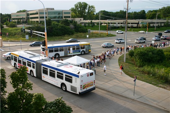 The most popular express bus location has been the Park & Ride at I-394 & County Road 73, in Minnetonka (pictured above). Nearly 14,000 people boarded at that location over the first four days of the State Fair. The Bloomington Park & Ride, near Mall of America connection between the METRO Red Line and METRO Blue Line, has seen nearly 13,000 customer boardings.