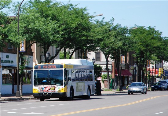 After crossing the Mississippi River, buses continue north on Central Avenue and through the Central Avenue Business District, home to an eclectic mix of ethnic restaurants, grocery stores and small businesses.