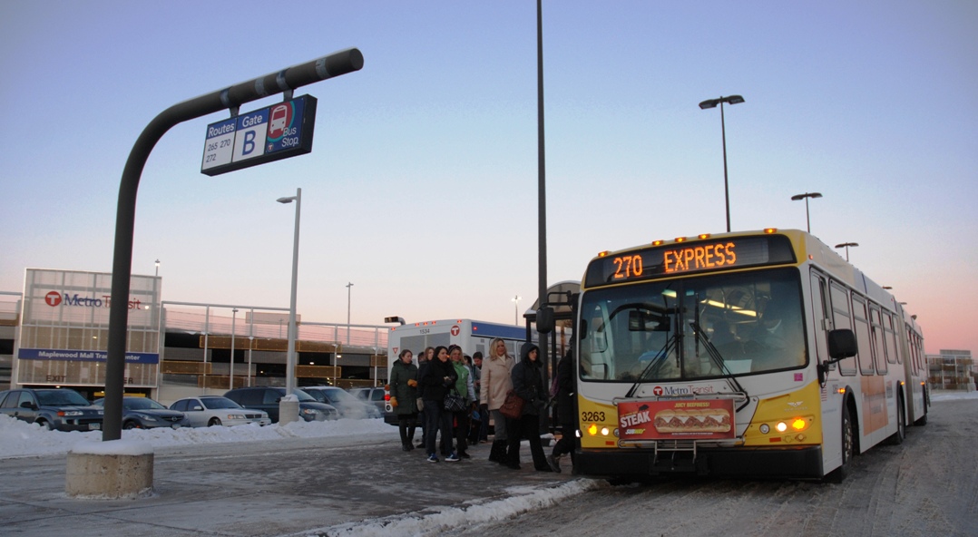 Responding to the rising demand, four morning and five afternoon trips were added to Route 270 as part of service changes that went into effect Dec. 7. Service now arrives in downtown Minneapolis from about 5:50 a.m. to 8:50 a.m., and departs from about 2:45 p.m. to 6:15 p.m. Non-stop trips from Maplewood Mall were also added as part of the service changes.
