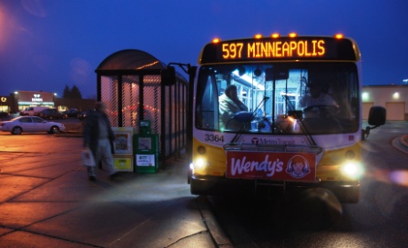 Instead of getting in her car, the Bloomington resident now walks less than a block to a bus stop where she catches Route 597. Within a half hour, she is let off on 2nd Avenue South where she walks an equally short distance to her office.