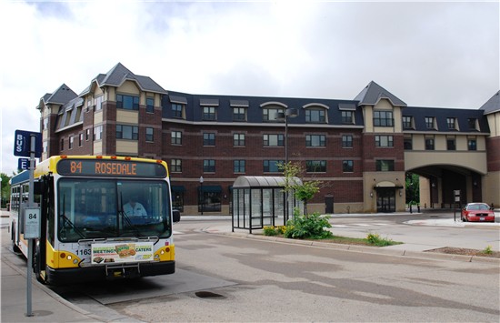 In the early 1970s, the route was extended to Roseville’s Rosedale Center. In 2001, it was straightened north of Como Avenue to follow Snelling Avenue directly to Rosedale, where a transit center has been built in the northeast corner of the mall, near the entrance to the AMC Rosedale 14.