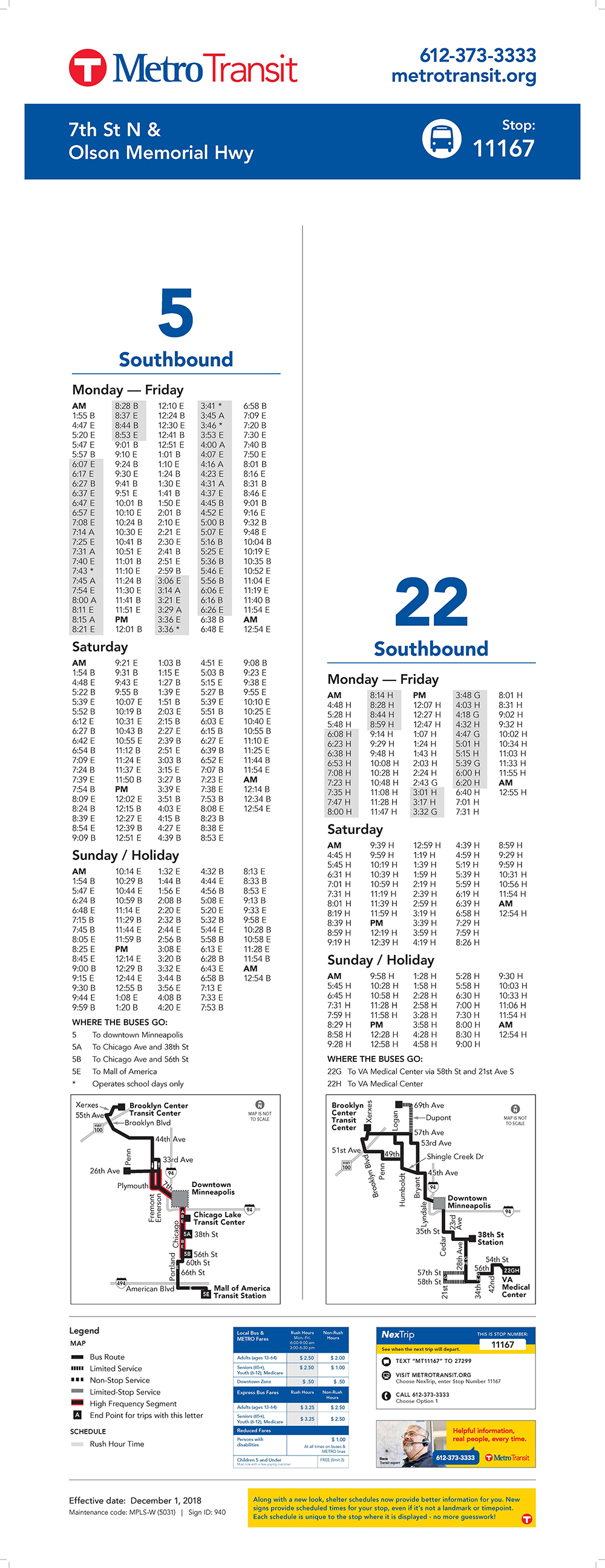 Customers who use schedules posted in waiting shelters will soon have an easier time telling when the next bus should arrive. Instead of using timepoints, shelter schedules printed for the December 1 service adjustments show the actual departure times. Timepoints are major stops or intersections along a route and are used to simplify printed schedules.